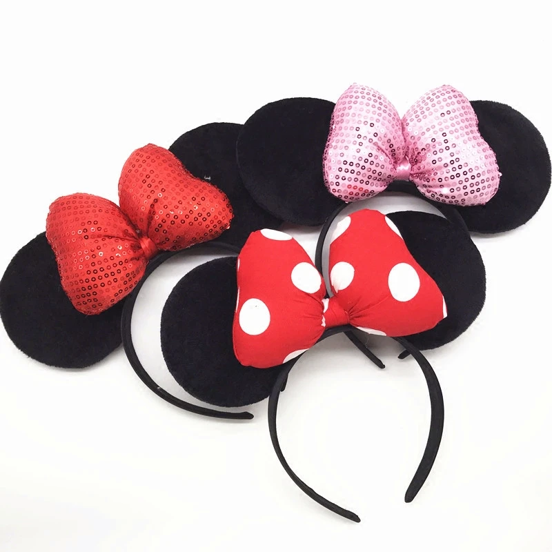 Minnie Mouse Ear Bow Sequins Headband Hair Band Accessories For Baby Kids Girls Hair Band Accessories Diy Disney Ears Sequin Headbands