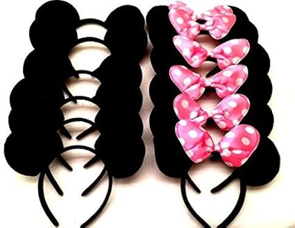 Party Supplies 24 Pc Minnie Mouse Ears Headbands Dark Pink Polka Dot Bows Mickey Birthday Party Silverless Co Uk